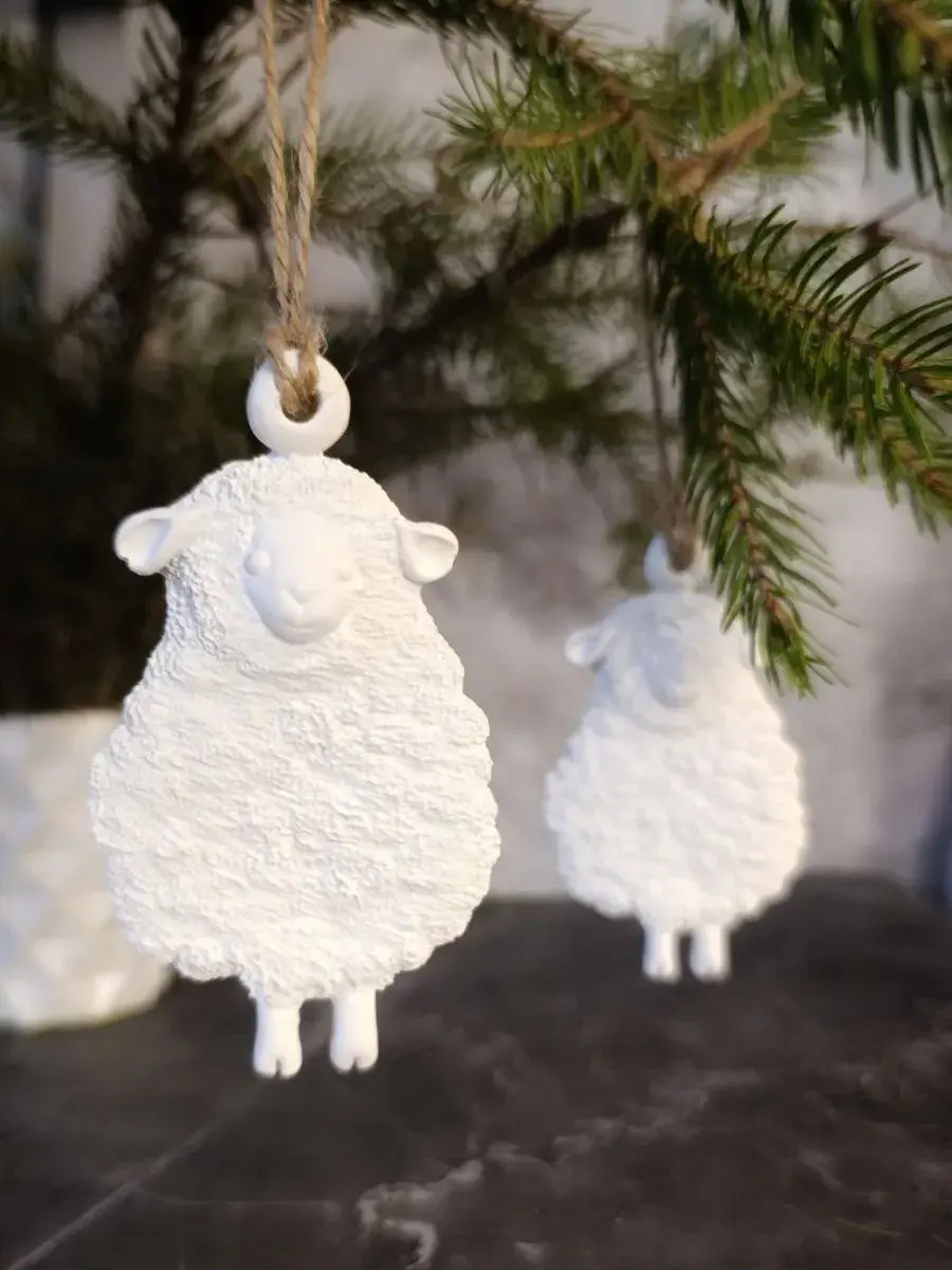 Новогодний декор Овечки - 2 шт. — это изысканное украшение для вашего дома, которое придаст праздничное настроение и создаст уютную атмосферу в интерьере. Этот набор из двух фигурок Овечек станет прекрасным дополнением к вашему декору на Новый год 2025 или любой другой праздник.